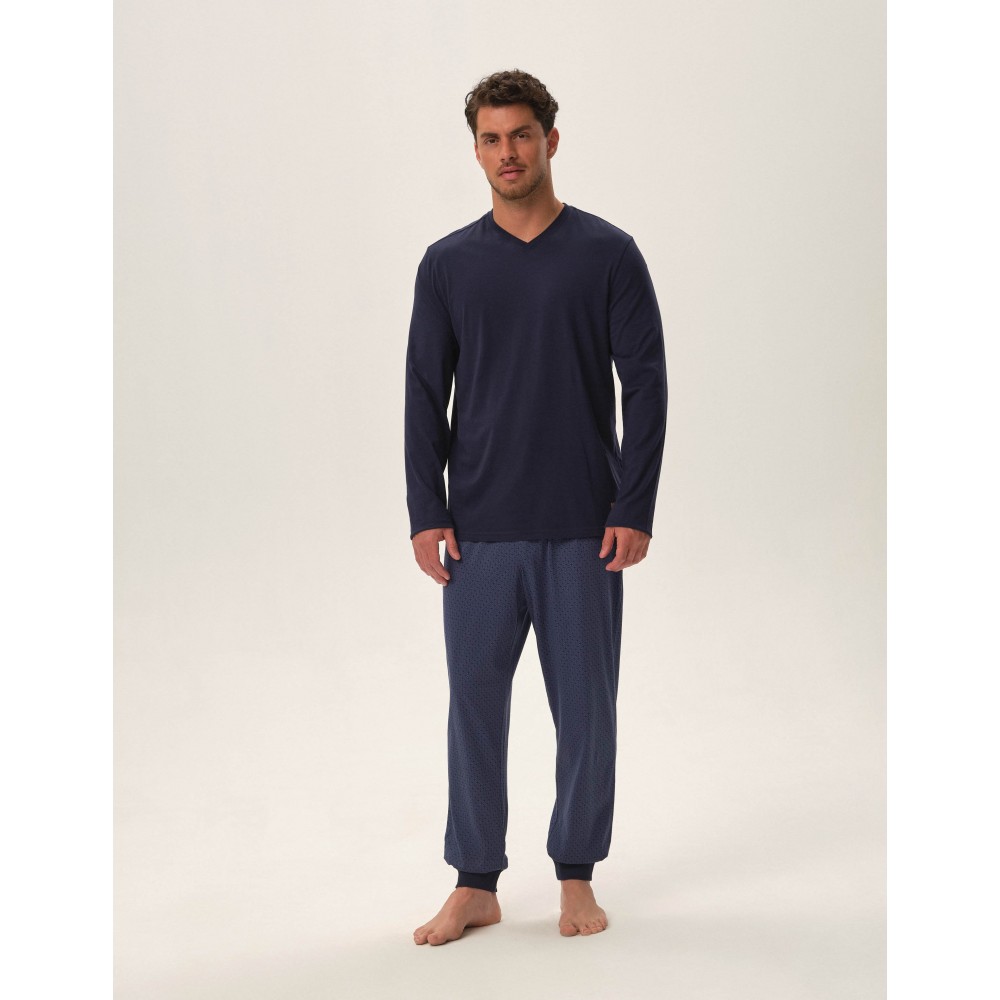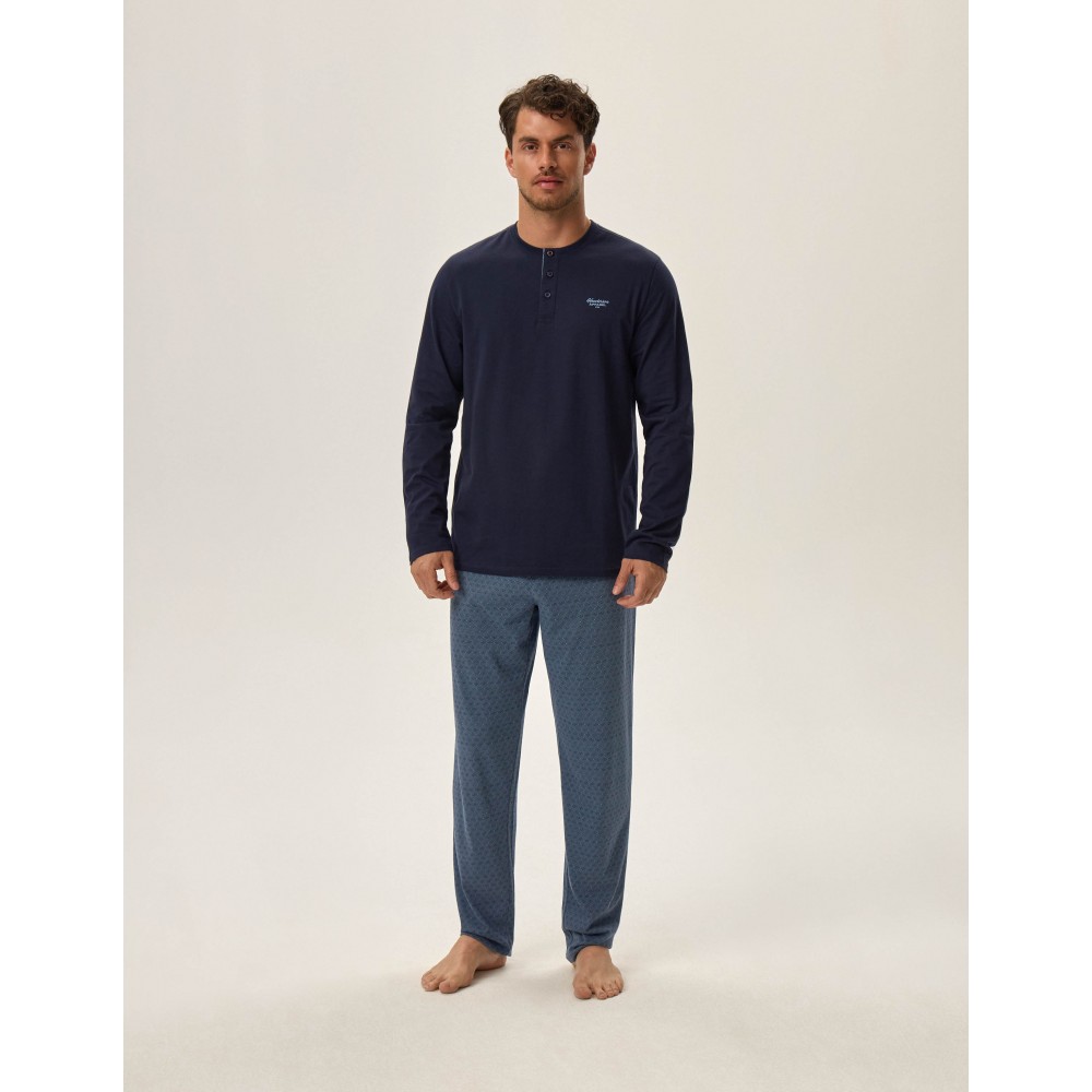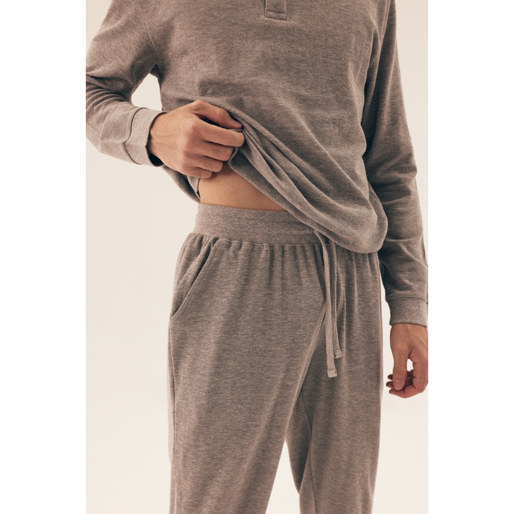 Стильна чоловіча піжама з натуральної бавовни. Сіра смугаста блузка з довгим рукавом у поєднанні з к..