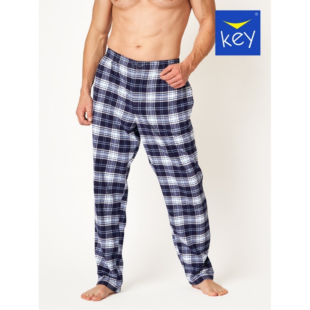Чоловіча піжама з бавовняної фланелі. Блузка з довгими рукавами в клітинку застібається на невелику ..