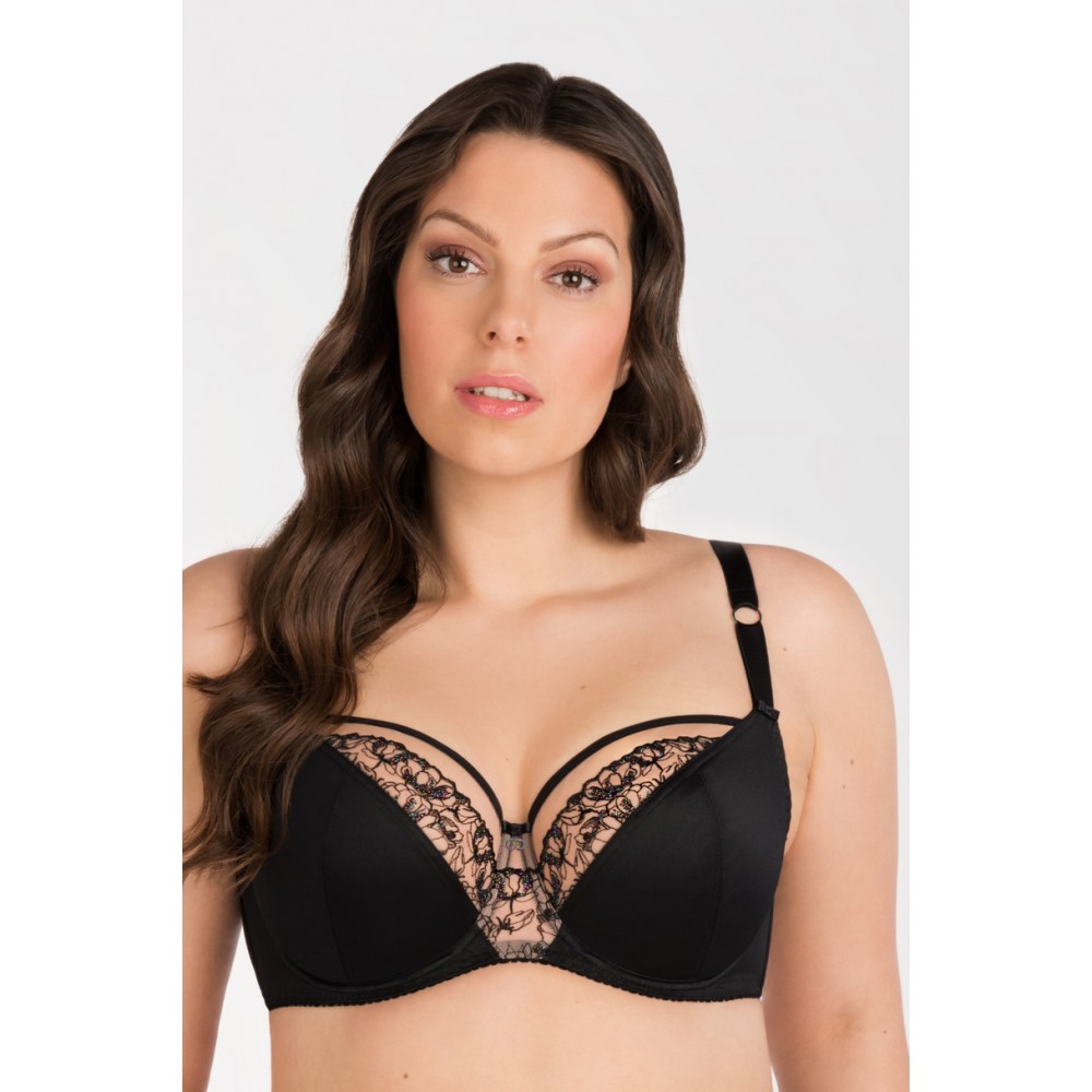 BRA K 101 (конструкція K 101) М'який бюстгальтер для жінок із середніми, великими та дуже великими грудьми. Рельєфна перемичка і зміщені в сторони бретельки сильно збирають бюст всередину - ефект дуже сильного підйому бюста. 3-роздільна чаша; 3 ширини ремінця (14, 18, 22); гачок з триступеневою регулюванням обхвату: 2 ряд - планка 14; 3 ряд – планка 18, 22. ЧАШКА: НИЖНЯ ЧАШКА: обшивка, трикотаж односторонній. ВЕРХНЯ ЧАШКА: вишивка блискучою ниткою, обшита стійким тюлем, верхній край оброблений гумкою. ТАЛІЯ: фігурна перемичка зі стійкого тюлю та вишивки; непрозора лайкра забезпечує дуже хорошу підтримку; Плоскі кісточки з боків забезпечують ідеальне прилягання бюстгальтера до тіла. Металеві диски та регулятори бензинового кольору (без нікелю). Склад: 90% поліамід, 7% еластан, 3% поліестер.
