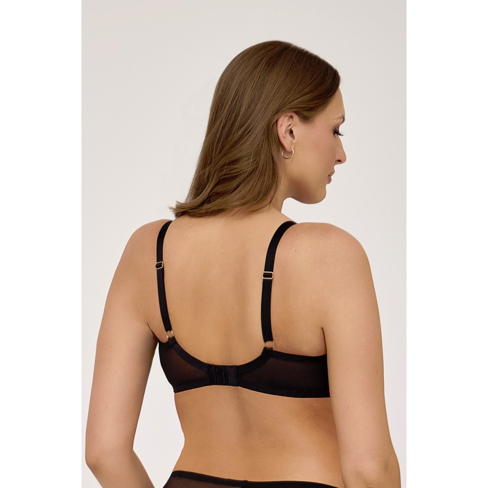 Stabilna konstrukcja z fiszbinami zapewnia doskonałe podtrzymanie i naturalne ułożenie piersi, a lekkie materiały gwarantują komfort noszenia przez cały dzień. Delikatny, biżuteryjny akcent na mostku podkreśla nowoczesny design tego modelu.