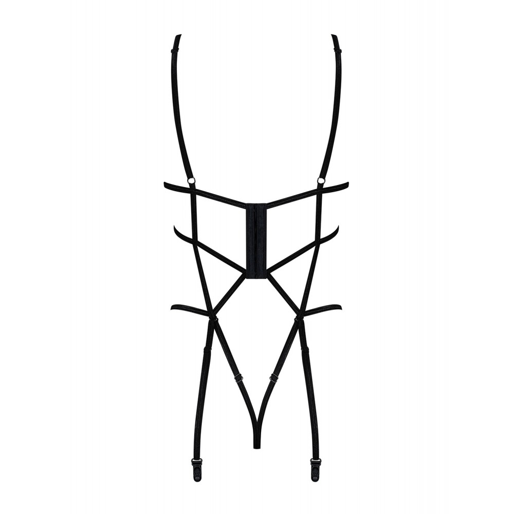 П'янкі ночі, наповнені гарячими моментами разом - відтепер ви більше ні про що думати не зможете! Тонкі бретелі, які сексуально обвивають ваше тіло, розв’яжуть ваші найпотаємніші фантазії, втілення яких ще ніколи не було таким простим і... таким приємним! Пориньте в океан сексуальної привабливості і дозвольте себе захопити хвилею насолоди, яка приведе вас прямо до незабутнього фіналу вечора! Всі спокусливі деталі: чорне відкрите боді Badossa, незвичайні бретельки, що обвивають тіло - унікальний крій, елегантний гіпюр на грудях - оригінальне оздоблення, відкритий бюстгальтер на кісточках - пікантні відчуття і красивий вигляд грудей, відкрита промежина - гарантія жару. відчуття, промежинні лямки відстібаються та регулюються, багатоступенева застібка - ідеальна посадка, відстібаються, регульовані підв'язки, приємні на дотик, еластичний матеріал (44% поліамід, 56% еластан)