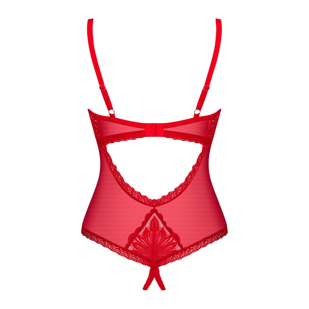 Додайте у своє життя трохи пікантності, зберігаючи клас і насолоджуючись кожним кроком! Вам обов'язково сподобається боді Chilisa. Класичний крій підкреслить жіночі вигини, відкритий промежину гарантує надзвичайні відчуття, а завершальний вау-ефект забезпечать мереживні вставки. Дозвольте собі зачарувати насичений червоний колір, який ідеально пасуватиме до вашого тіла та зробить кожну мить близькості неповторною.