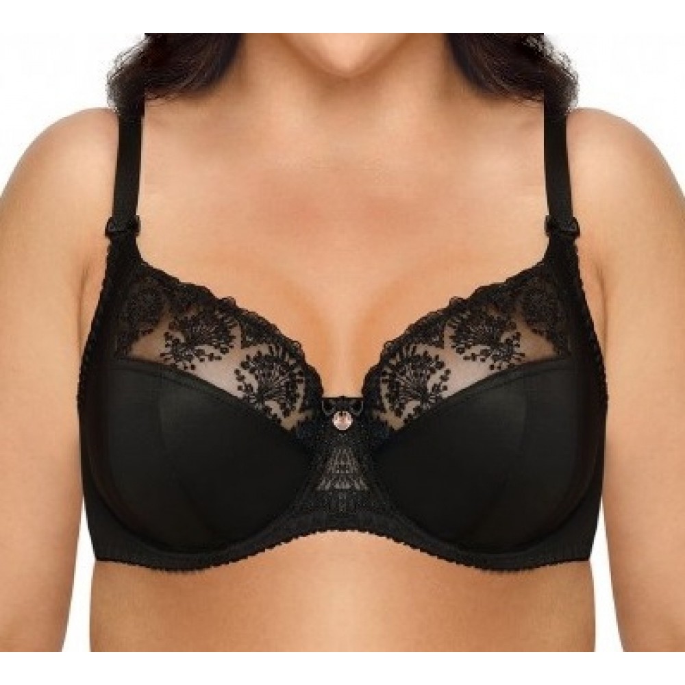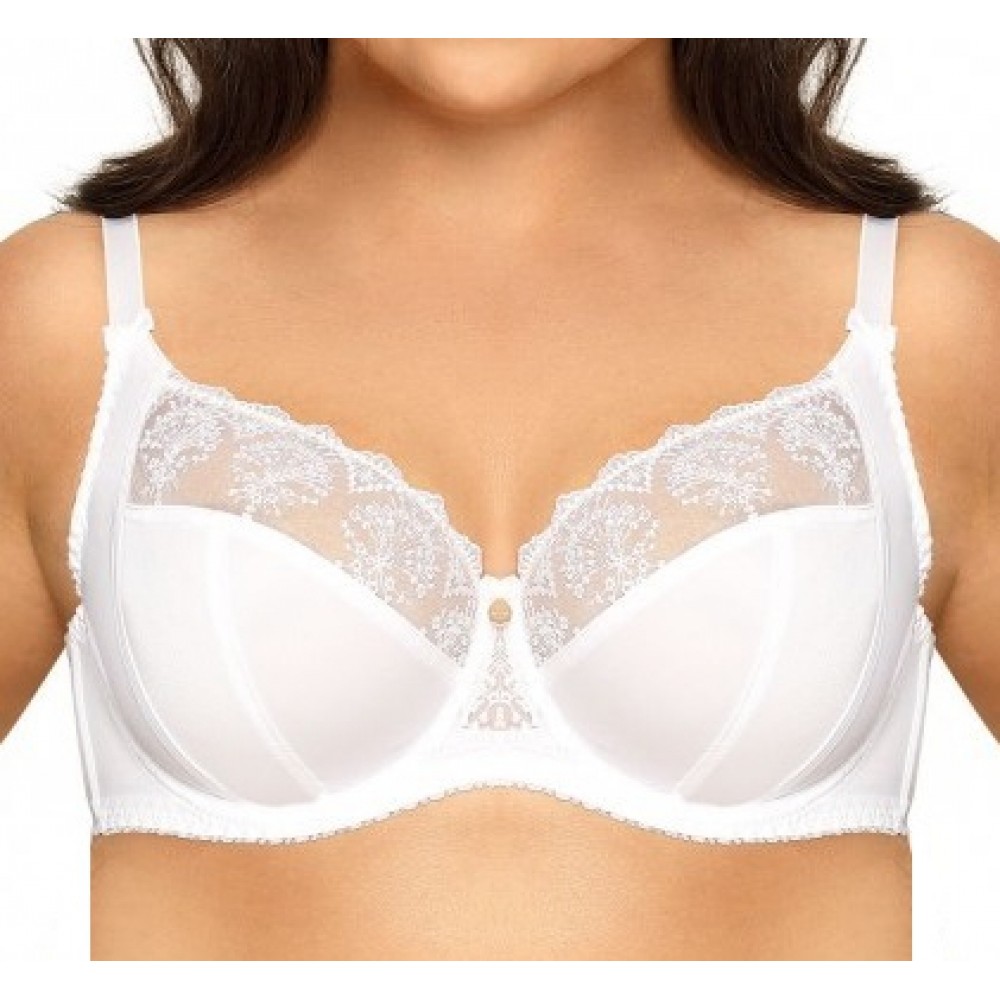М'який бюстгальтер з еластичної трикотажної тканини в нижніх чашечках. Прозора вишивка у верхній чаш..