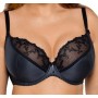 Напівкомбіноване бюстьє – чашки з блестящей тканини мікрофібра графіт, верхня лінія, наповнена небесною чорною сотнею, прикрашеною вишивкою з кольоровим мотивом. Боковини посилені вертикальні коси. Ремешки не съемные.
