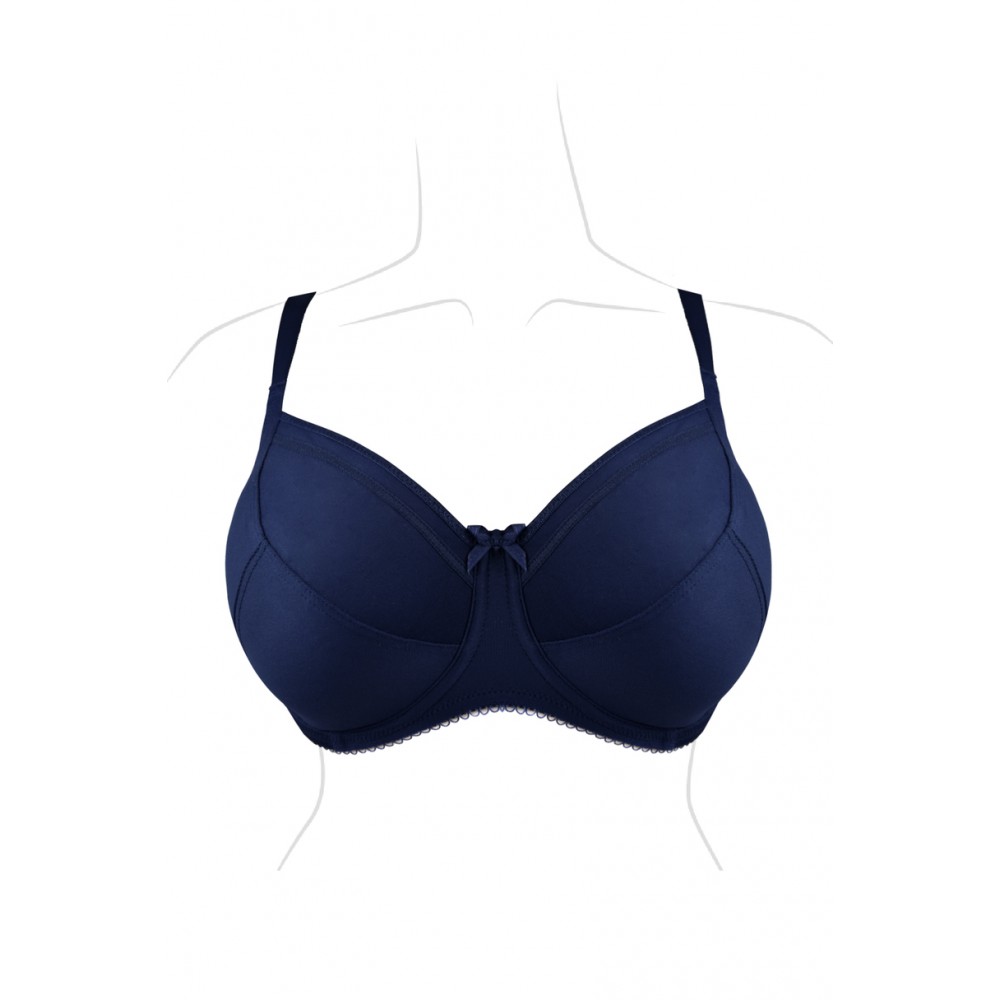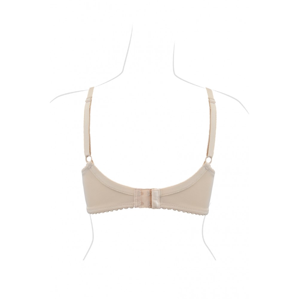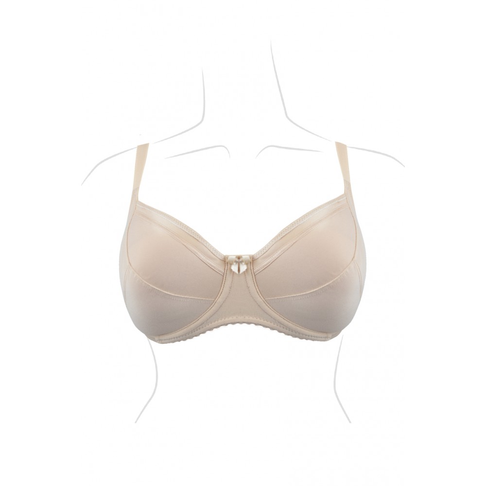 Модель 299 – це елегантний, гладкий, класичний м'який бюстгальтер. Нижні чашечки та баска виготовлені з гладкої трикотажної тканини, яка ідеально збирає груди з боків до центру та фіксує їх. Центр бюстгальтера, ідеально облягаючи перенісся, прикрашений бантом. Чашечки контуровані кісточками, що обрамляють груди. Бюстгальтер центрує груди, піднімаючи їх та зберігаючи їх природну форму. Бічні частини виготовлені з міцної трикотажної тканини Lycra. Бретелі гладкі, регулюються ззаду та мають різну ширину залежно від розміру. Склад: 83% поліамід, 17% еластан.