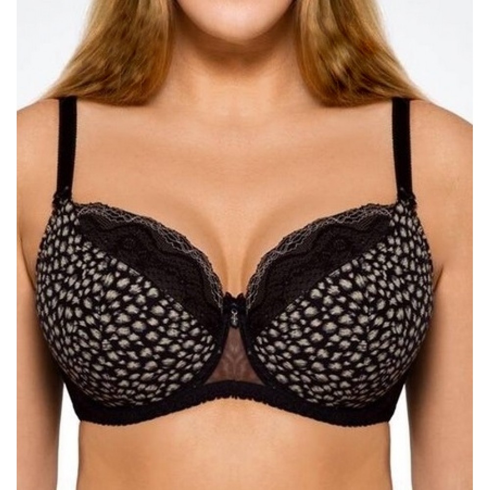 Зручний, м'який бюстгальтер з трикотажу, покритого тканиною з малюнком. Нарощені, посилені чашки. Бо..