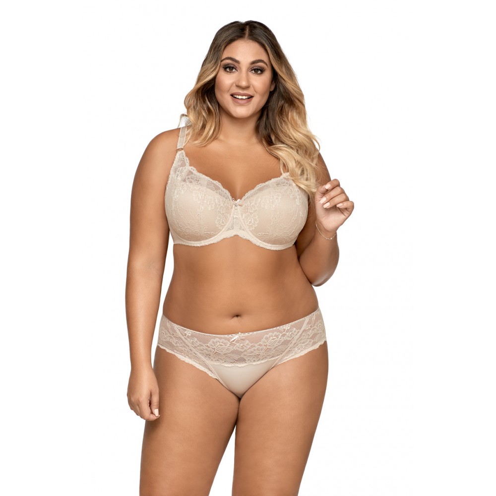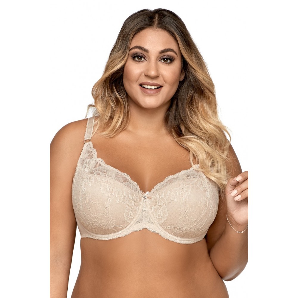 Неймовірно жіночний, білосніжний бюстгальтер-балконет. Бретелі гарно оздоблені мереживом. Менші розміри мають м'яку кишеню для підтягуючого ефекту. Бюстгальтер надає грудям округлої форми. Бретелі регулюються та не знімаються. Можна носити з трусиками або стрінгами.