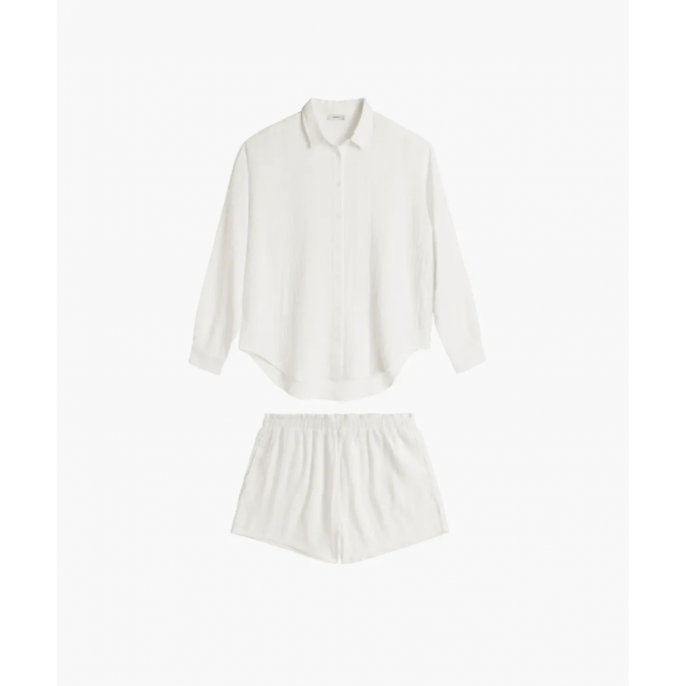 Жіноча піжама з ніжної віскози з додаванням льону, оздоблена мерехтливою строчкою. Однотонна футболк..