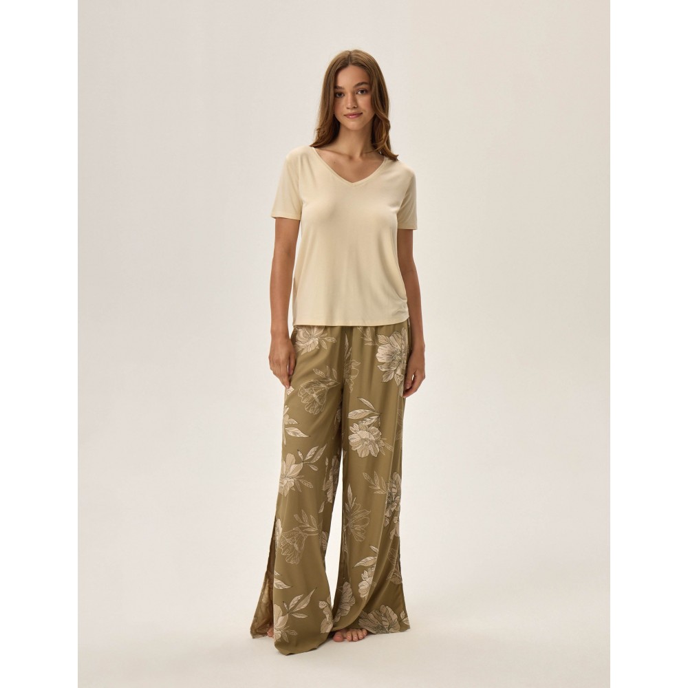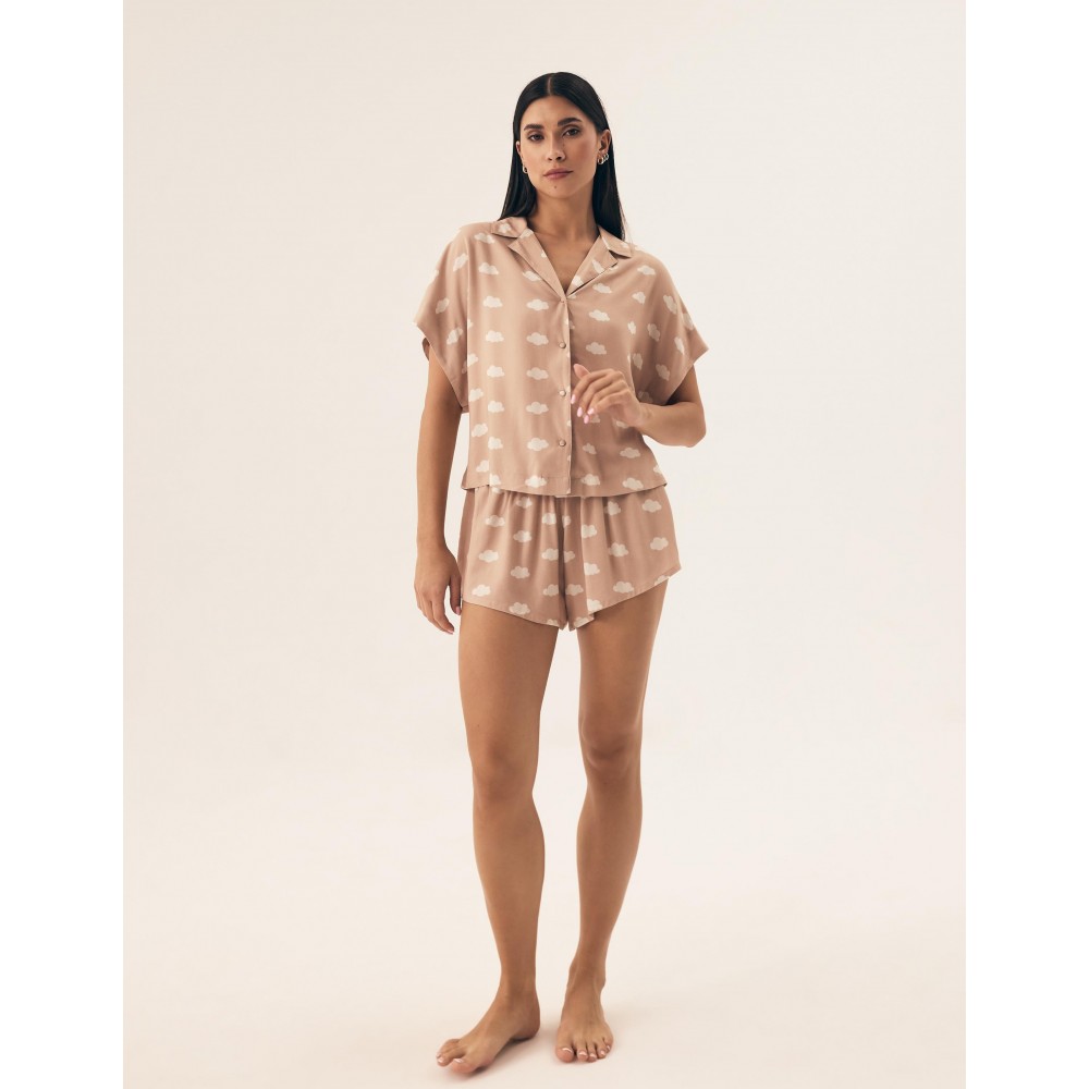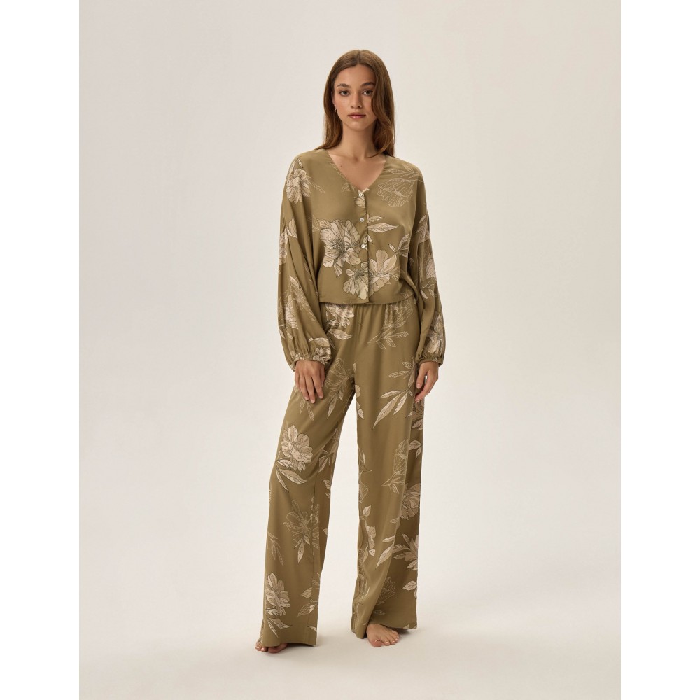 Елегантна жіноча піжама з теплої тканини. Верх із класичним коміром та застібкою на ґудзики спереду...