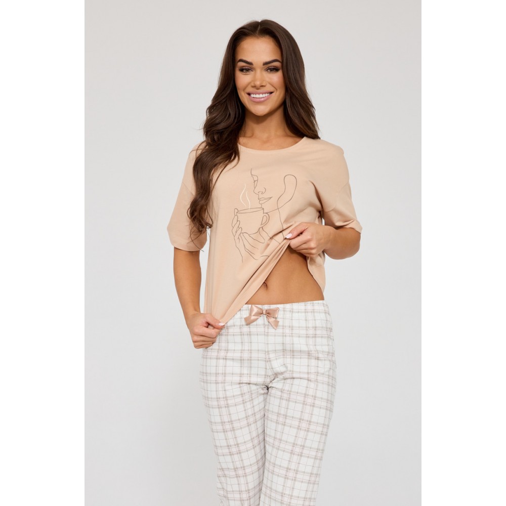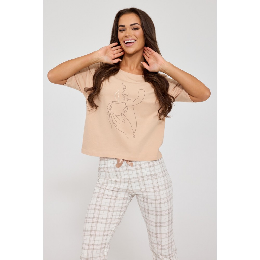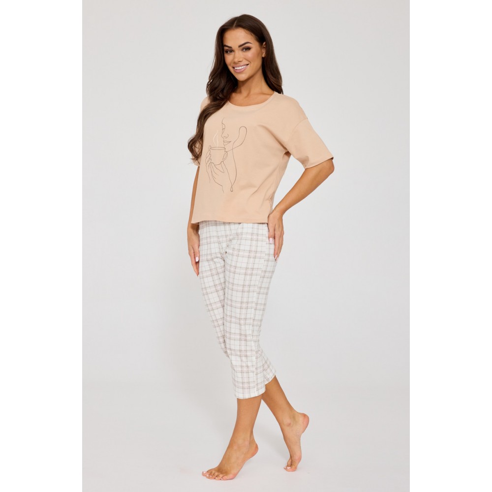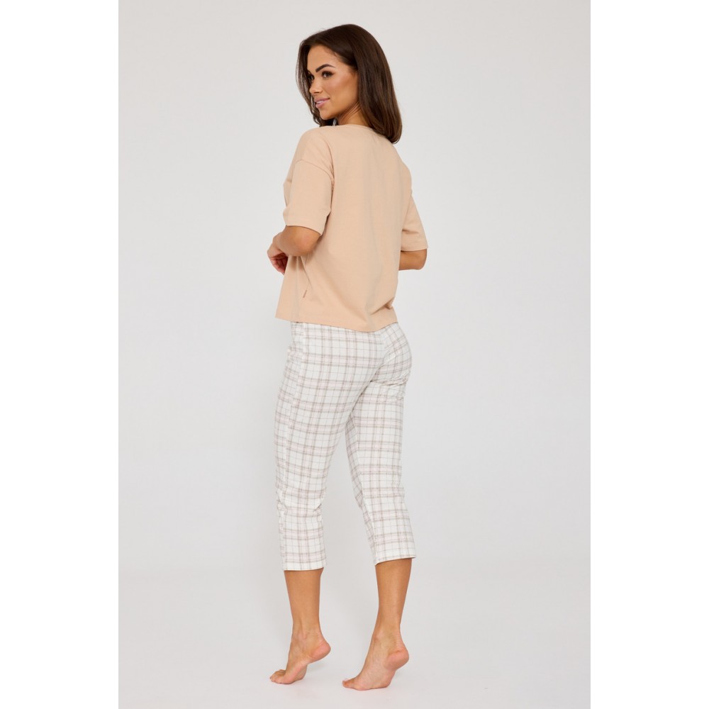 Штани довжиною 7/8 з модним картатим візерунком додають стильного, дещо повсякденного вигляду. Зручний еластичний пояс забезпечує ідеальну посадку без відчуття тісноти. Піжама упакована в естетичну коробку, що робить її ідеальним, практичним та елегантним подарунком.