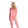 Елегантність та винятковий комфорт гарантовані – забезпечуючи спокійний сон та догляд за шкірою найвищої якості. Виготовлена з приємної для шкіри віскози, яка м'яко облягає тіло. Піжама зручного вільного крою. Верх має короткі, широкі рукави, круглий виріз горловини, оздоблений гіпюровим мереживом, та легку зборку по центру. Капрі з тонким, вшитим еластичним поясом. Зручна піжама, яка допоможе вам створити комфортний образ для моментів відпочинку в затишку вашого дому.