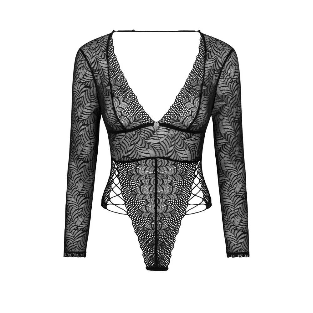 Це, безперечно, одне з найбільш приголомшливих боді Obsessive. Ось тобі – Мерліс! Красиве мереживо з мотивом листя і спокусливою зав'язкою на стегнах. Крім того, є гарно окреслена спинка. Уявіть, як це неймовірно м'яке мереживо огортає ваше тіло і змушує вас почуватися надзвичайно сексуально... Перевірте деталі: мереживне боді Merlys з довгими рукавами, застібка на промежині - зручно використовувати, блискуча підвіска між грудьми, шнурівка на стегнах - сексуально елемент, знімна, регульована лямка на плечах - носиш як хочеш, приємний на дотик матеріал (85% поліамід, 15% еластан)