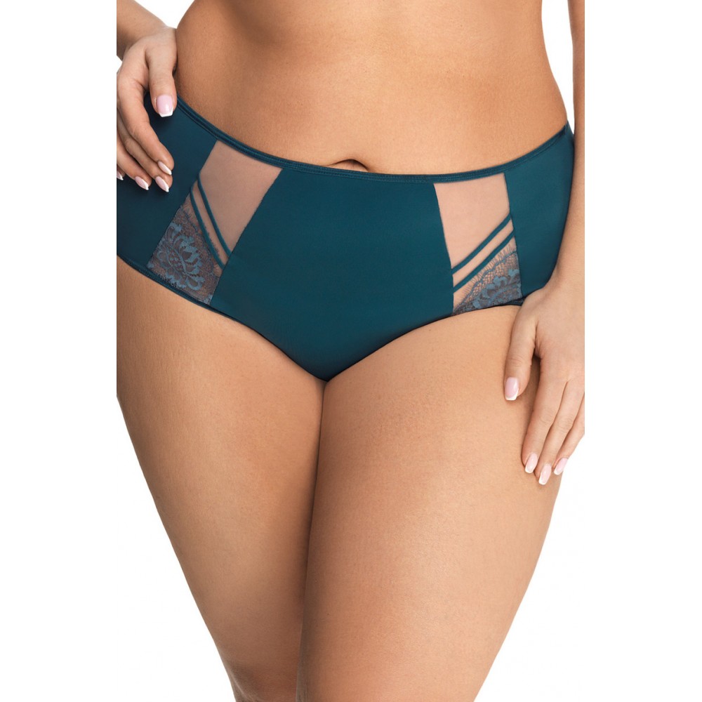 М'який бюстгальтер призначений для жінок із середніми та великими грудьми. Забезпечує ефект підйому і збирання бюста всередину, чашки з 3-х частин зі стійкого шнурка для вій і стійкого тюлю. Верхній край чашки плавно перетікає в лямку, забезпечуючи кращу підтримку бюсту. Спинка з прозорої лайкри забезпечує дуже хорошу посадку та підтримку. Бічні кісточки запобігають згортанню матеріалу, в залежності від розміру, дво- або трирядні гачки з триступеневою регулюванням окружності. Невідстібні регульовані лямки трьох розмірів з металевих елементів світло-золотого кольору. Склад: 90% поліамід, 7% еластан, 3% поліестер