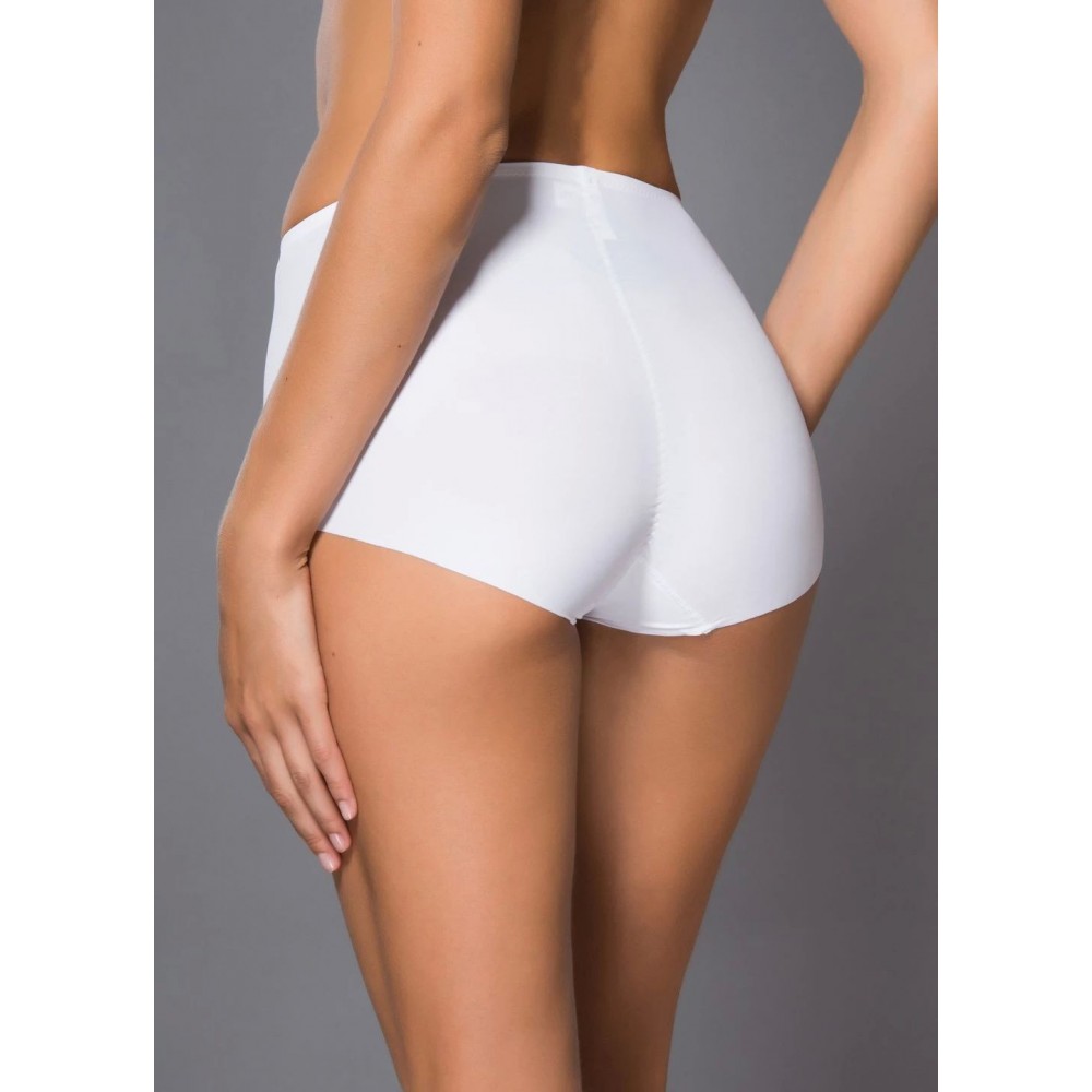 Трусики сліп з еластичного трикотажного полотна з високою лінією талії. Лазерна обробка нижніх зрізів. Конструкція трусиків забезпечує комфортну посадку на тілі та легкий корегуючий ефект завдяки подвійній передній деталі.