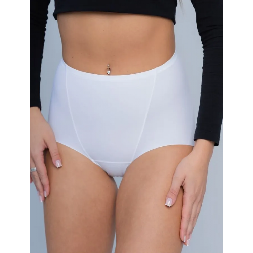 Трусики сліп з еластичного трикотажного полотна з високою лінією талії. Лазерна обробка нижніх зрізів. Конструкція трусиків забезпечує комфортну посадку на тілі та легкий корегуючий ефект завдяки подвійній передній деталі.