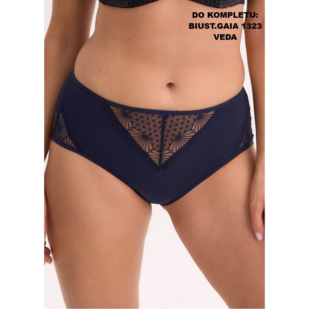 Класичні труси-труси повного крою, виготовлені з темно-синьої мікрофібри та ніжного фатину. Передня ..