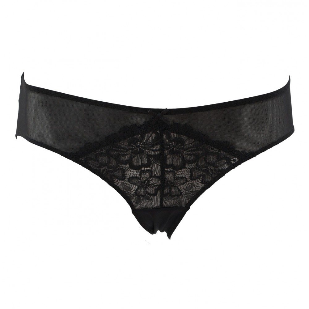 Жіночі трусики з ніжної тюлевої сітки та ажурного мережива з квітковим візерунком. Спинка з гладкої ..