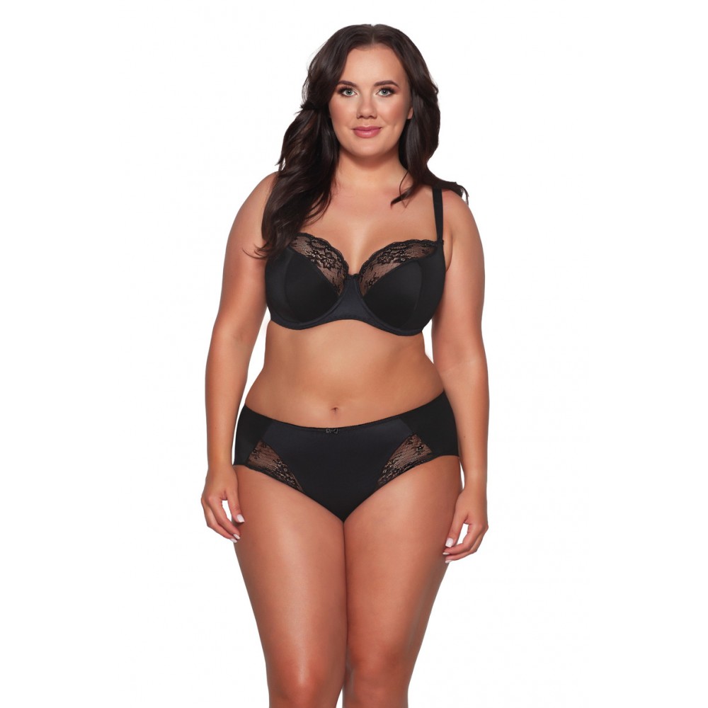 Класичні суцільнокроєні труси, спереду оздоблені мереживом, ззаду однотонні. Склад: 91% поліамід, 5%..