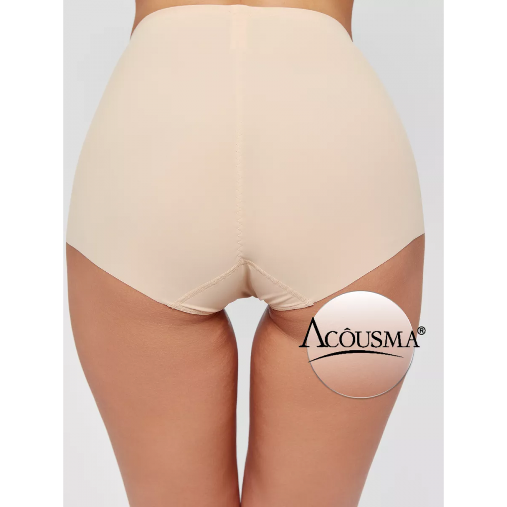 Трусики сліп з еластичного трикотажного полотна з високою лінією талії. Лазерна обробка нижніх зрізів. Конструкція трусиків забезпечує комфортну посадку на тілі та легкий корегуючий ефект завдяки подвійній передній деталі.