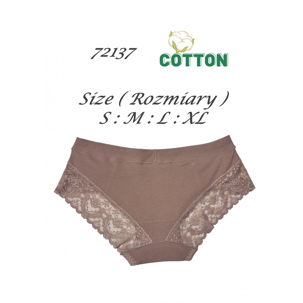 • Жіночі труси з високоякісної бавовни. Ребриста тканина, оздоблена ніжним мереживом. Широкий, зручний, не стискаючий елас..