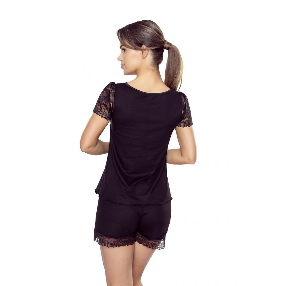Zmysłowa i wygodna letnia piżama damska wykonana z miękkiej wiskozy z dodatkiem elastycznego włókna, która doskonale układa się na sylwetce i zapewnia komfort nawet w gorące noce. Model zachwyca kobiecym designem – ozdobny dekolt, rękawki oraz pas pod biustem wykonane są z delikatnej, ażurowej koronki, która nadaje całości romantycznego uroku. W komplecie znajdują się krótkie spodenki z wygodną gumką w pasie i koronkowym wykończeniem nogawek. Idealna piżama na lato – łączy elegancję, wygodę i subtelną zmysłowość.