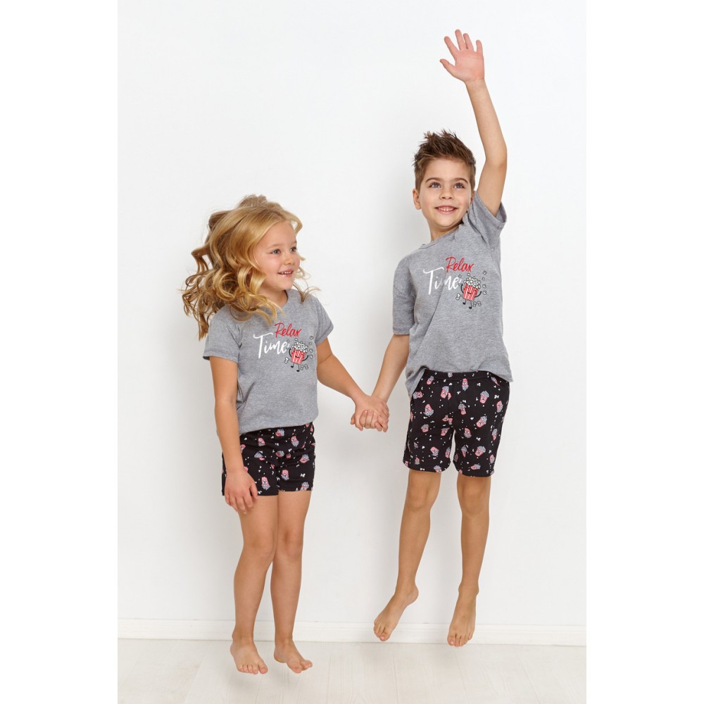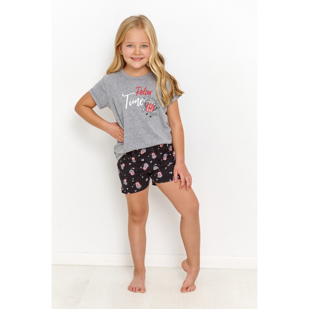 Бавовняна піжама для дівчинки, футболка з принтом. Шорти з візерунком у тон.