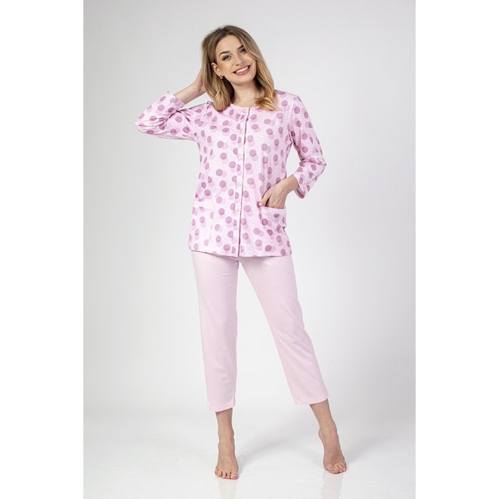 Жіноча бавовняна піжама з яскравим принтом спереду. Верхній одяг має рукави 3/4 та круглий виріз. Од..