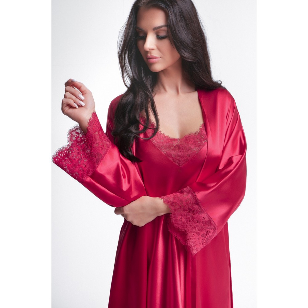 Цей короткий червоний атласний халат з мереживними рукавами – це надзвичайно елегантний та чуттєвий ..