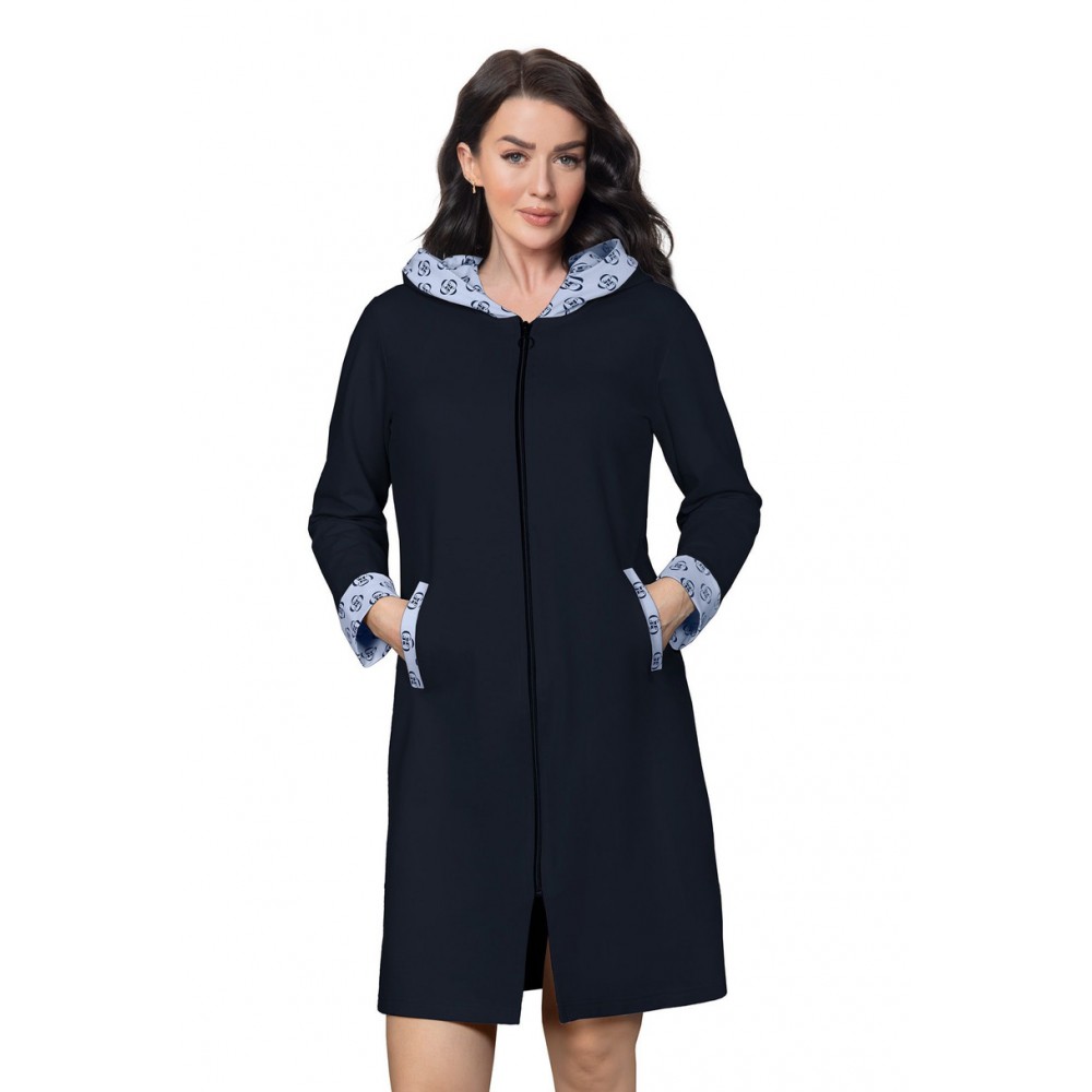 Відкрийте для себе комфорт та функціональність зі стилем у жіночому халаті DOROTA 392 W/25 NEW . Виготовлений зі 100% високоякісної бавовни, він забезпечує природну повітропроникність та м'якість на дотик. Практична блискавка забезпечує легке одягання та знімання, а зручні кишені додають практичності на кожен день. Ідеальний вибір для ранку та вечора – як після ванни, так і для лінивих днів вдома.