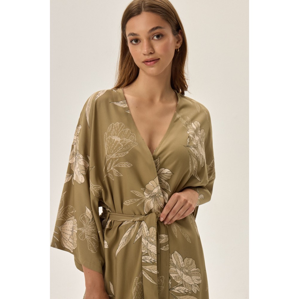 Жіночий халат із зав'язкою на талії. Виготовлений з ніжної віскози. Ідеально підходить до жіночої піжами 41873.