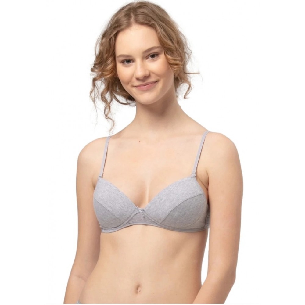 Цей підлітковий бюстгальтер виготовлений з надзвичайно м'якої бавовни з 5% еластану, однотонного кольору. Чашечки мають легку підкладку та не мають кісточок. Регульовані знімні бретельки входять до комплекту.