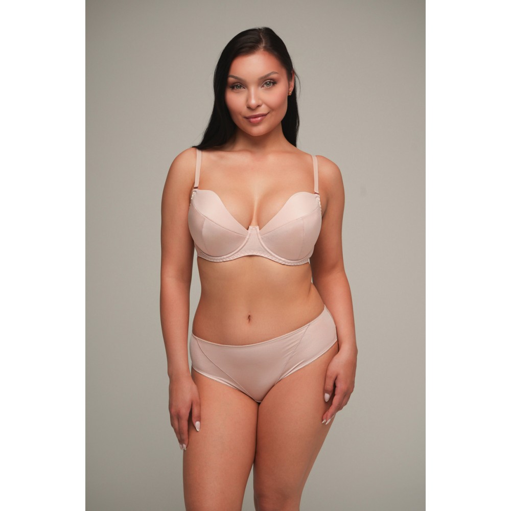 Бюстгальтер AV 2202 бежевого кольору – ідеальний вибір для жінок, які шукають білизну, що поєднує функціональність з витонченою елегантністю. Його контурні чашечки ідеально збирають та піднімають груди, підкреслюючи декольте навіть з дуже глибокими вирізами. Знімні бретельки забезпечують гнучку посадку з різноманітними образами – від вечірніх суконь до топів без бретелей. Гладка поверхня та нюдовий колір гарантують, що бюстгальтер залишається непомітним під одягом, забезпечуючи максимальний комфорт протягом усього дня.