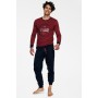 Зручна чоловіча піжама з двох частин, виготовлена з м'якої, приємної на дотик бавовни. Комплект включає футболку з довгими рукавами та довгі штани. Футболка має графічний принт, що відсилає до назви та концепції бренду. Однотонні штани мають вільний, зручний крій. Манжети, поділ та штанини оздоблені широкими ребристими манжетами. Цей комплект ідеально підходить для носіння цілий рік. Виготовлений зі 100% бавовни.