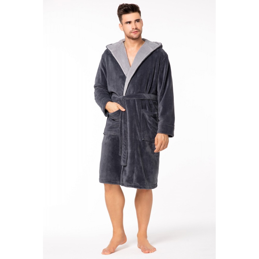 Класичний, зручний чоловічий халат з приємного матеріалу, що не катиться. Має глибокий капюшон, кише..