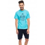 Зручна бавовняна піжама для чоловіків. Візерунчаста футболка з довгими рукавами та V-подібним вирізо..