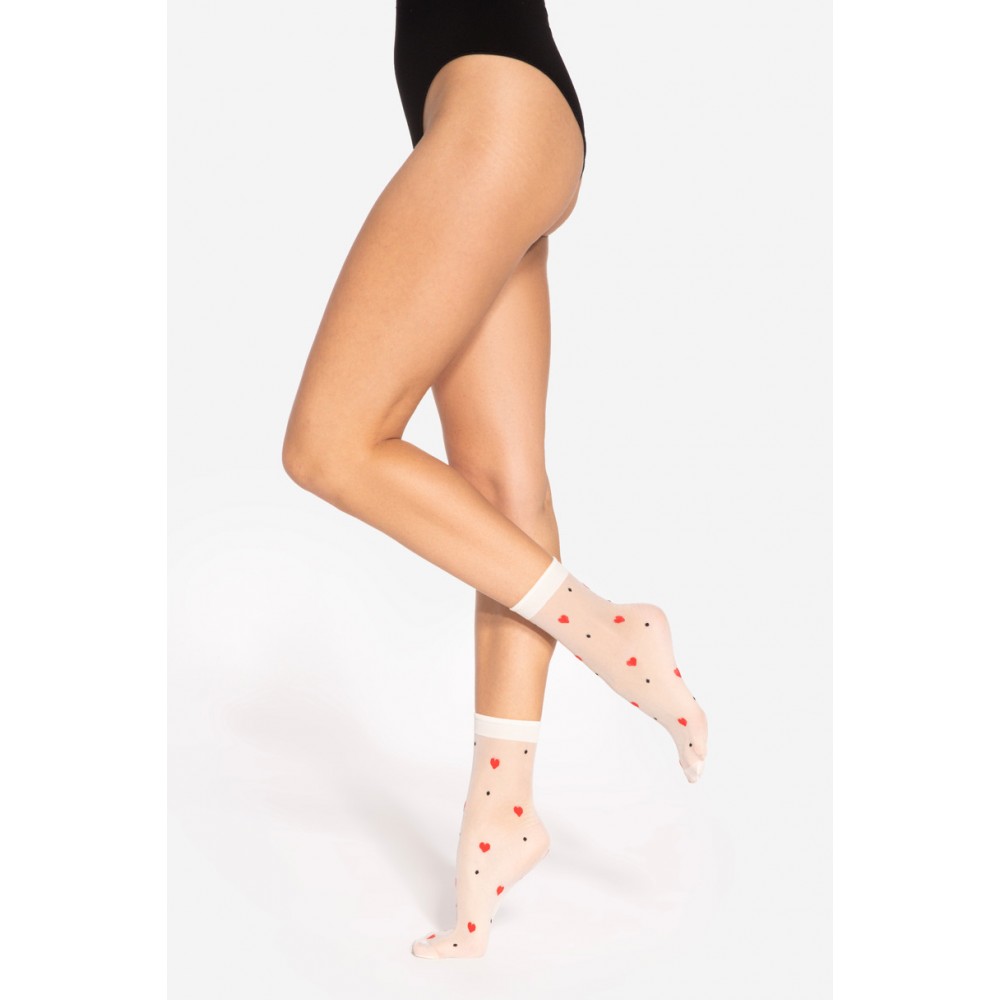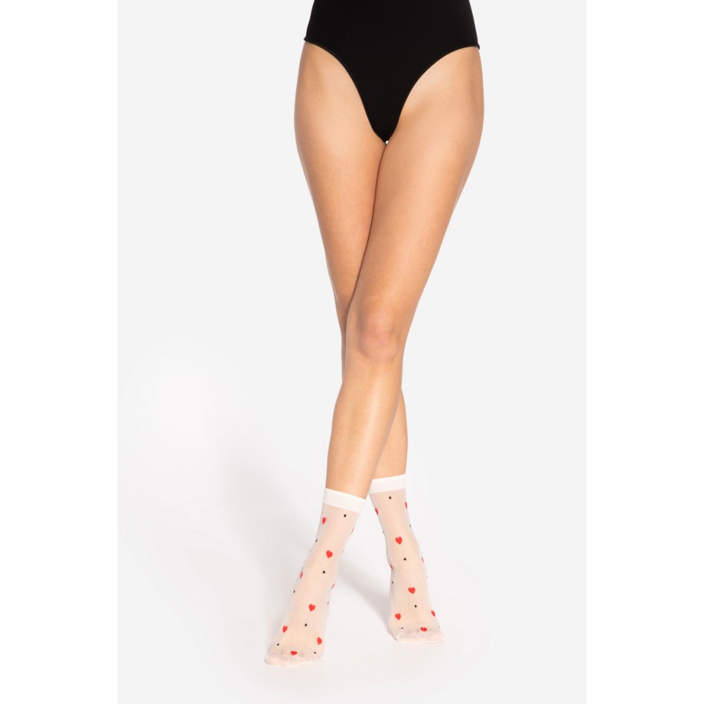 Додайте нотку романтики до свого гардеробу зі шкарпетками Gatta Spring Vibes, розмір 04, щільністю 15 деньє. Цей чарівний фасон привертає увагу своїм ніжним, прозорим матеріалом, прикрашеним червоними сердечками та чорним горошком. Ідеально підходять для весни та літа, ці шкарпетки не тільки виглядають приголомшливо, але й забезпечують комфорт завдяки м’якій, еластичній пряжі та зручному манжету. Вони є ідеальним вибором для жінок, які хочуть поєднати витончений стиль з дівочою чарівністю.