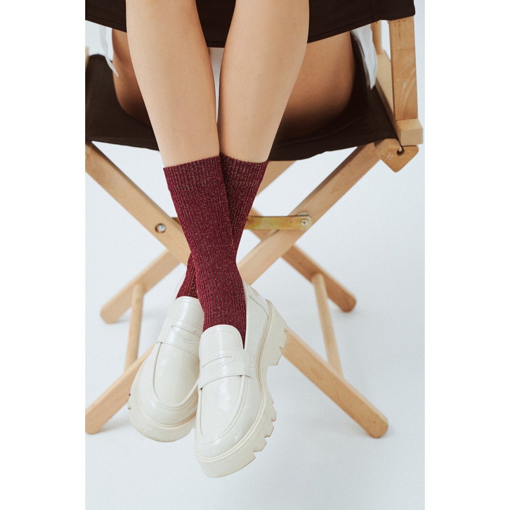 Ці жіночі шкарпетки з широкою, не стискаючою еластичною стрічкою та люрексовою ниткою поєднують комфорт та елегантність. Їхня широка еластична стрічка забезпечує комфортне носіння, не здавлюючи ногу, ідеально підходить для тих, хто цінує свободу рухів та уникає дискомфорту від тиску. Це гарантує, що шкарпетки міцно тримаються на місці, не обмежуючи кровотік. Додана до матеріалу люрексова нитка надає шкарпеткам ледь помітного блиску, надаючи їм елегантного та стильного вигляду. Цей ледь помітний металевий ефект додає нотку сяйва, що робить їх ідеальним вибором як для щоденного носіння, так і для більш елегантних випадків. Ці шкарпетки поєднують функціональність з модним виглядом.