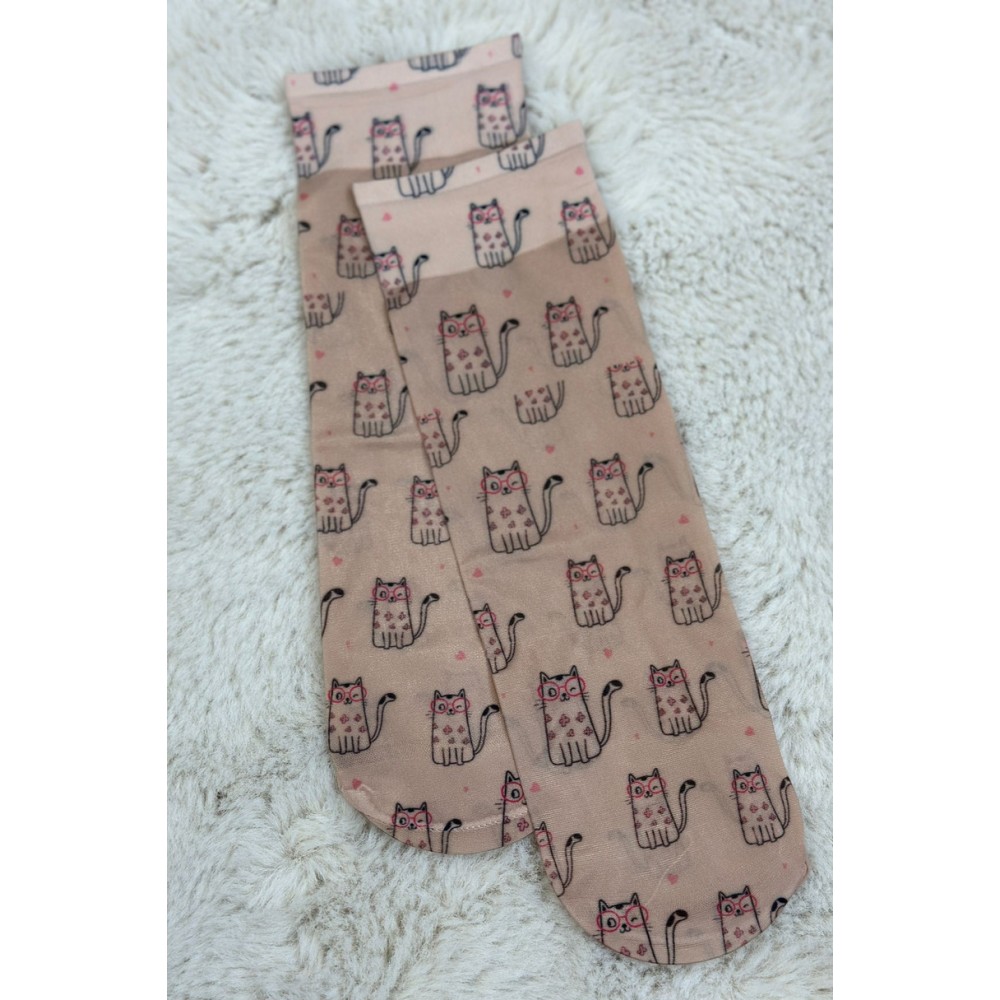 • Ці тонкі жіночі шкарпетки із зображенням великих котів на бежевому фоні – елегантний та витончений аксесуар, що поєднує ..