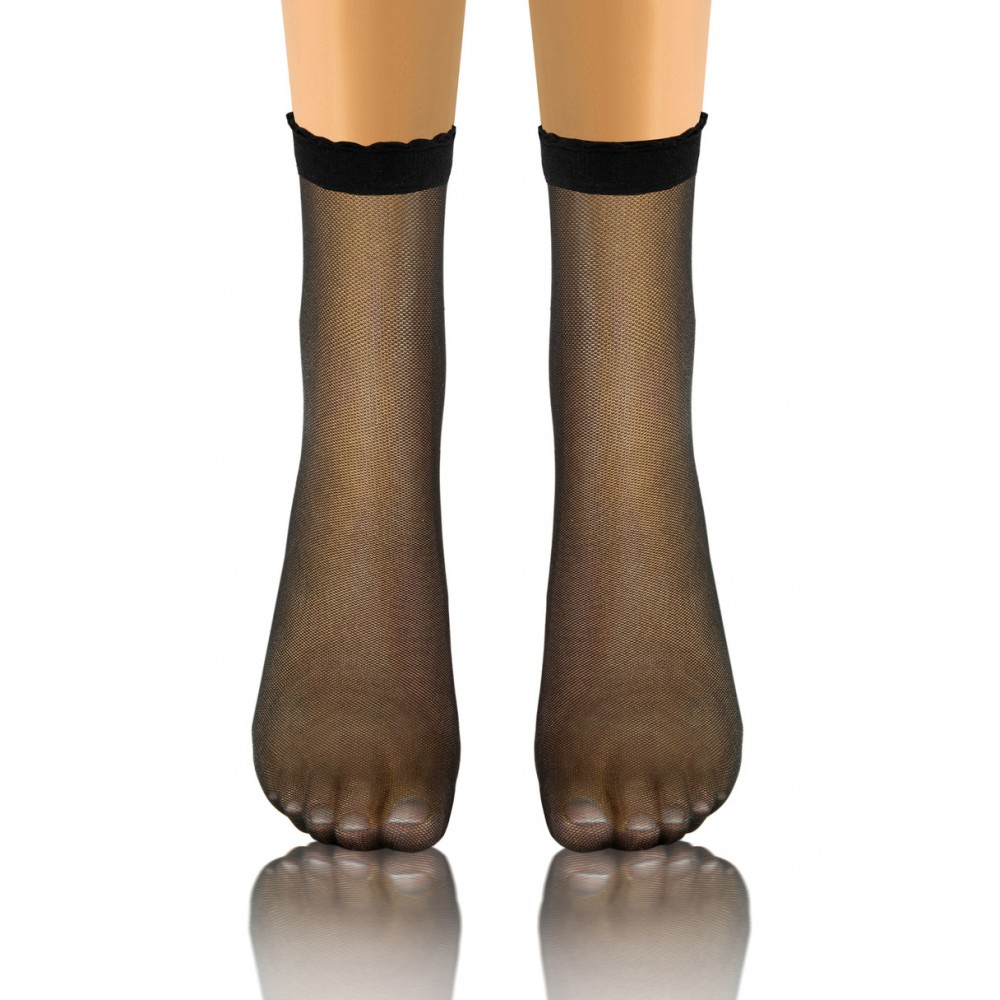Шкарпетки WZ 11 PIKOT від Sesto Senso – це втілення жіночного стилю. Виготовлені з прозорої сітки та прикрашені ніжним хвилястим візерунком з цятками з боків, вони виглядають надзвичайно легкими та елегантними. Чарівна рюша на манжеті додає їм дівочого шарму та робить їх ідеальним доповненням як до повсякденного, так і до більш вишуканого одягу. Завдяки еластичному матеріалу вони ідеально адаптуються до стопи, забезпечуючи комфорт на весь день.