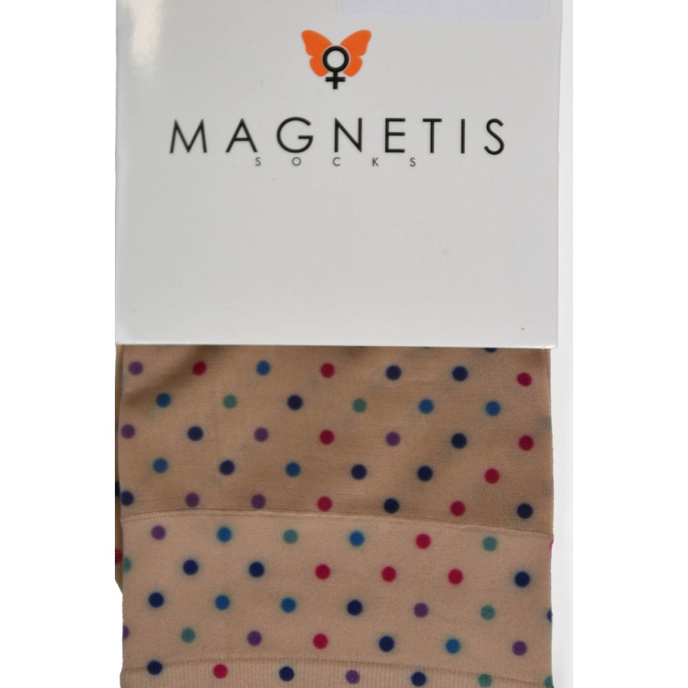 Доповніть свій гардероб стильними шкарпетками MAGNETIS з різнокольоровим візерунком у горошок! Виготовлені з м'якого та гнучкого матеріалу, вони ідеально підлаштовуються під вашу ногу, забезпечуючи максимальний комфорт. Ніжна тканина 20 деньє робить ці шкарпетки повітропроникними та ідеальними для будь-якої пори року. Ніжний бежевий колір з чарівним візерунком у горошок додає елегантності та легкості вашому вбранню.