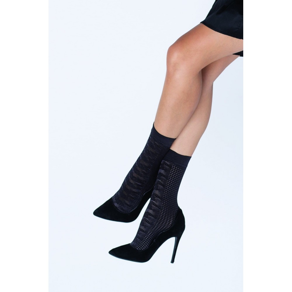 Жіночі шкарпетки щільністю 50 деньє, оздоблені геометричним візерунком. Однотонні носки, підбори та манжети.