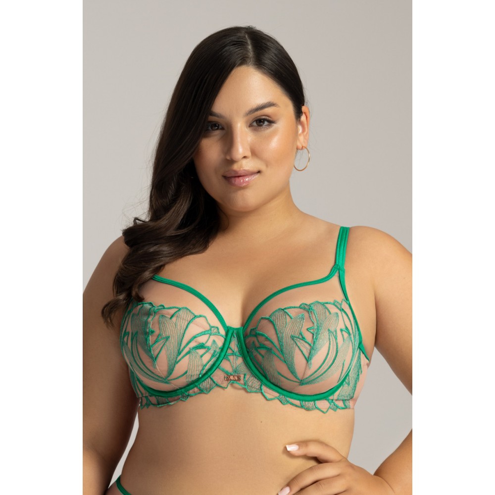 Бюстгальтер Soft, конструкція K-1396 AV 2161 Moss Soft – віддайся захоплюючій магії цієї моделі та дозволь собі нотку барвистого божевілля! М'які чашечки з ніжного, чуттєвого тюлю, рясно розшитого весняним листям, щільно огортають бюст, природно формують і підтягують його. Освіжаючий, соковитий відтінок зеленого додає характер і підкреслює переваги декольте. Щоб завершити образ, оберіть приголомшливі труси або бразильяни з цієї ж лінійки та відчуйте себе надзвичайно жіночною! Склад: 88% поліамід, 8% бавовна, 4% еластан.