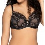 Бюстгальтер із жорсткими чашками, верхня лінія з ніжної сітки, прикрашена квітковим мотивом. Чашки на підкладці з бавовни бежевого кольору. Невідстібні, регульовані бретелі. Склад: 88% поліамід, 8% бавовна, 4% еластан.