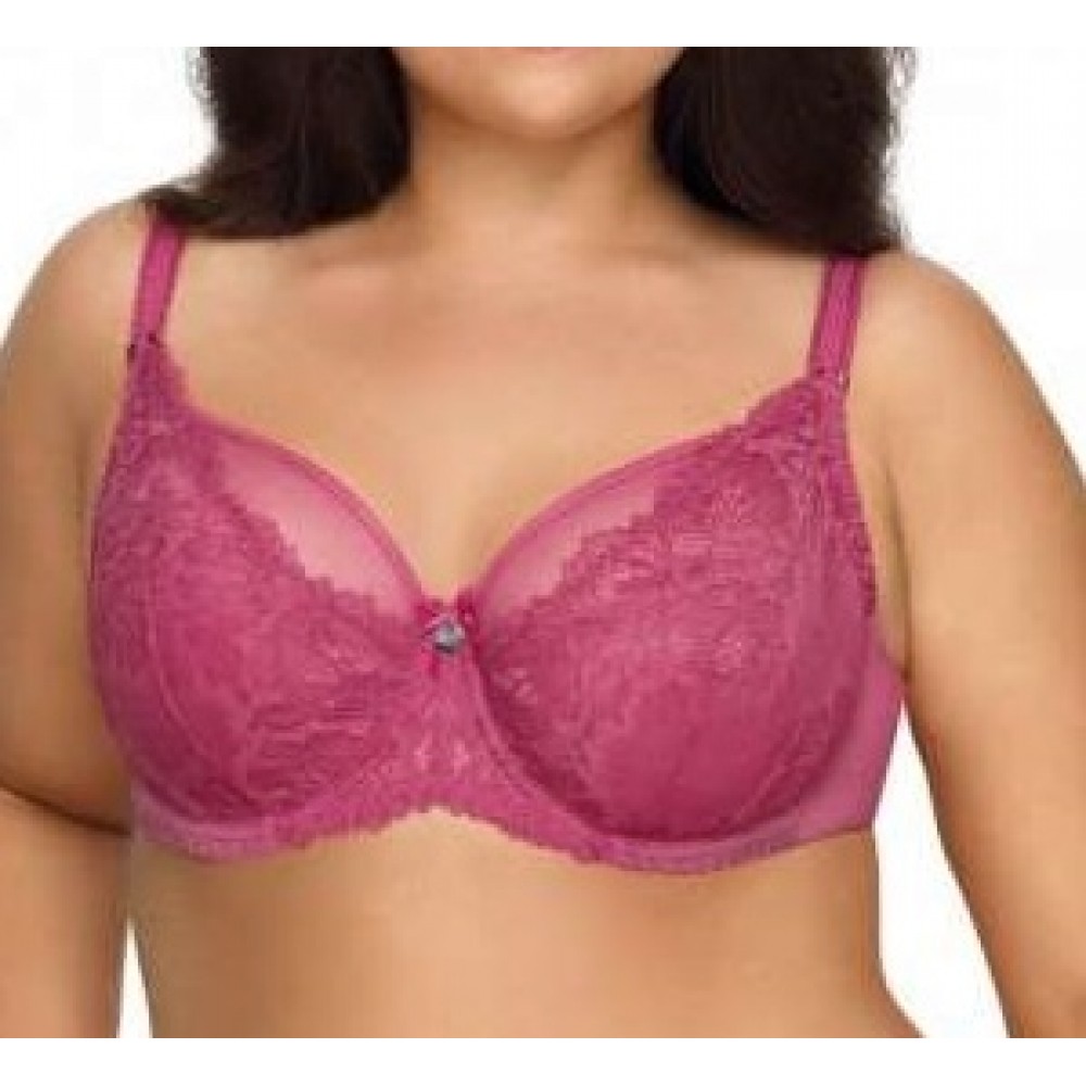 Бюстгальтер із жорсткими чашками, верхня лінія з ніжної сітки, прикрашена квітковим мотивом. Чашки н..