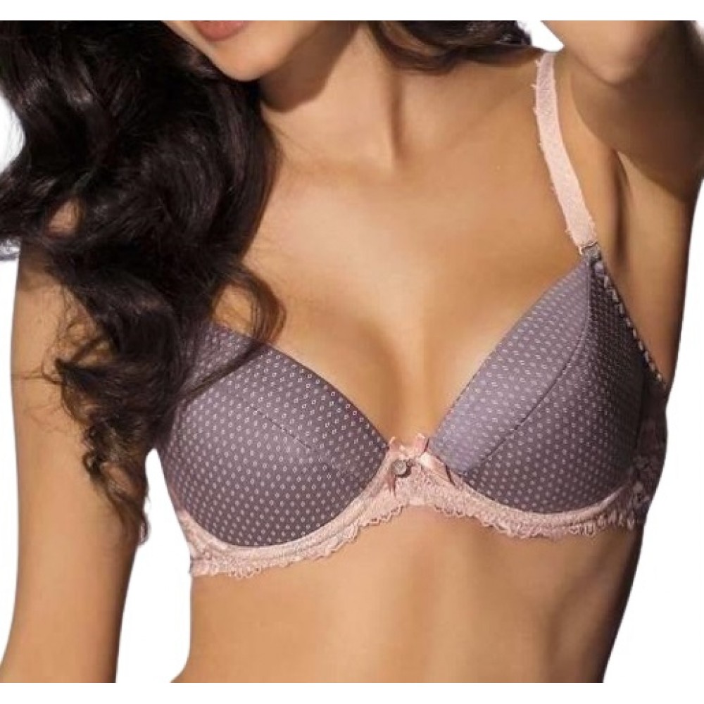 Бюстгальтер з напівпідкладкою. Чашки з мікрофібри прикрашені дрібним крапчастим візерунком. Приверта..