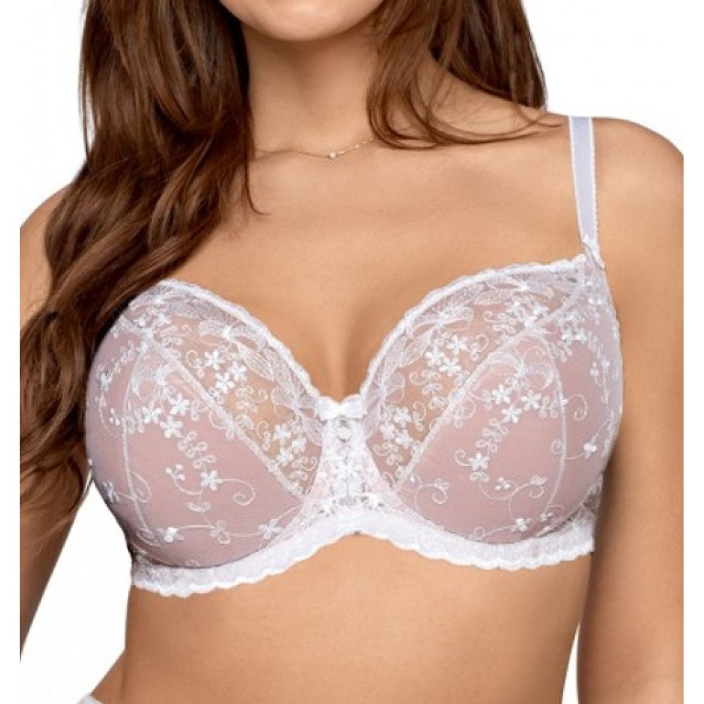 Бюстгальтер з напівпідкладеними чашечками з ніжної сітки, прикрашений красивою вишивкою з квітковим ..