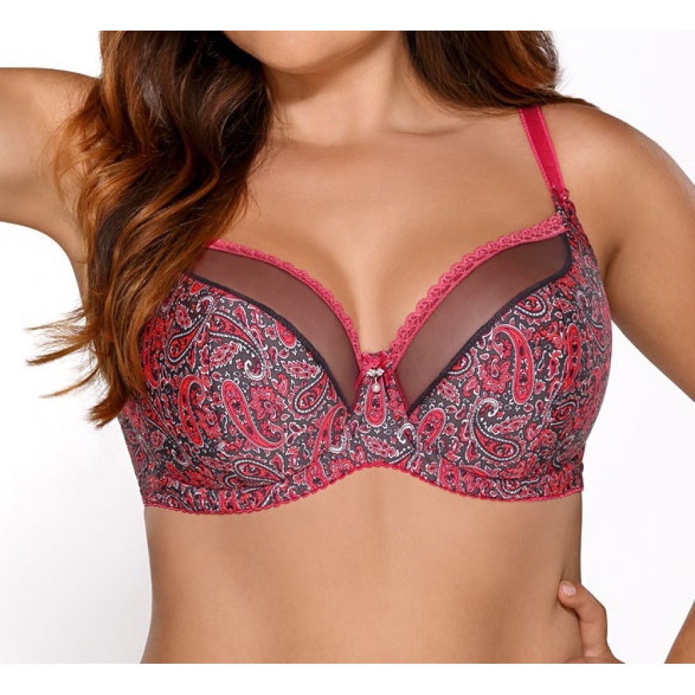 Бюстгальтер з напівпідкладкою, що привертає увагу, виготовлений з мікрофібри з малюнком. Верхня ліні..