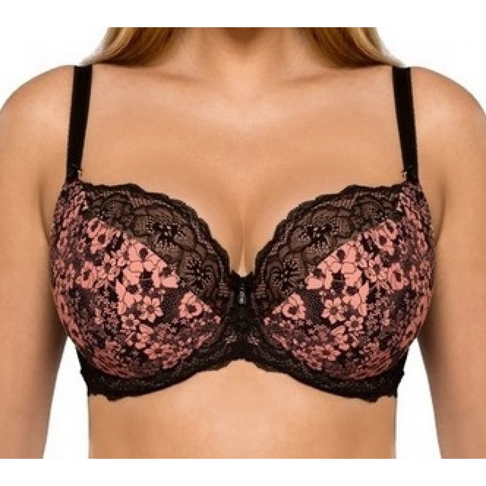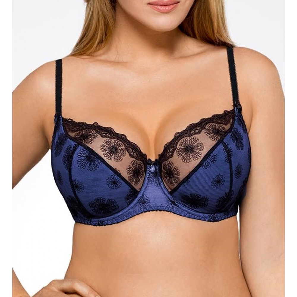 Бюстгальтер жіночий напівпідкладений з ніжної сітки, прикрашений ефектною вишивкою з квітковим мотив..