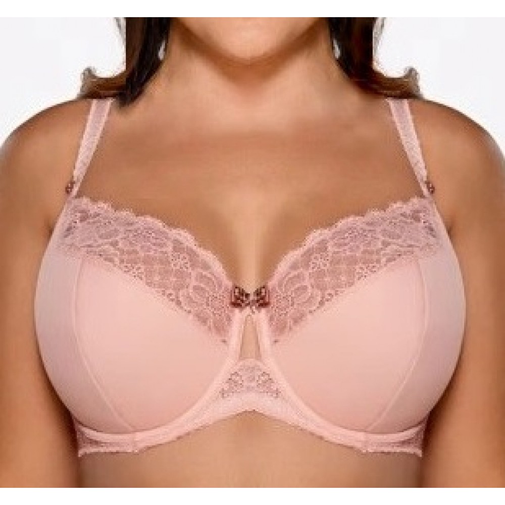 Бюстгальтер з напівпідкладкою з однорідної мікрофібри, зверху еластична сітка, прикрашена ефектною в..