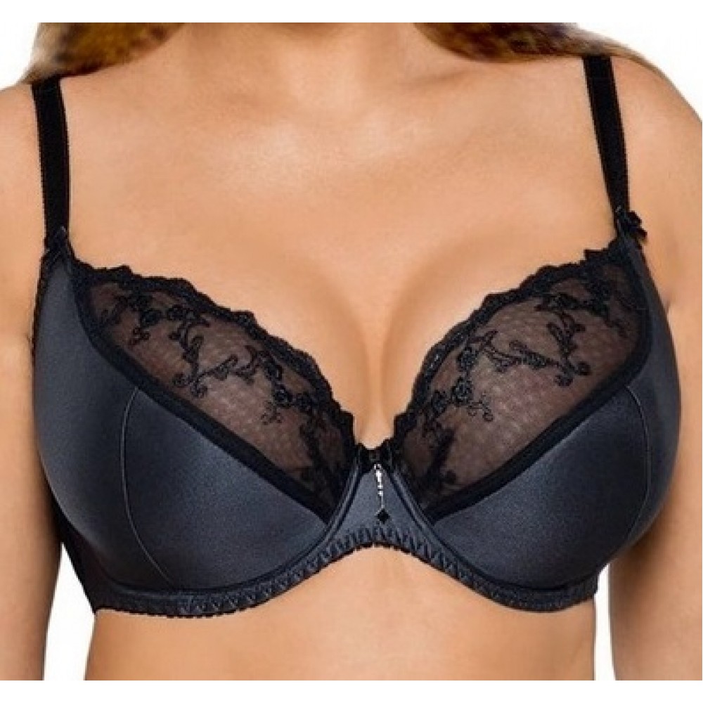 Бюстгальтер з напівпідкладкою - чашечки з блискучої графітової мікрофібри, верхня лінія чашечок з ні..